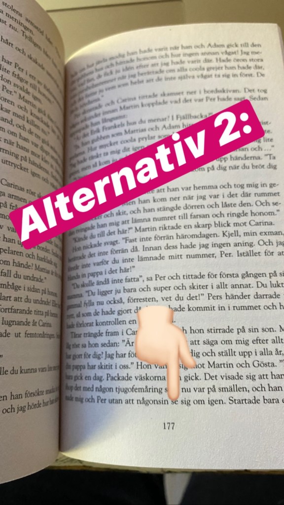 Under helgen hade jag en röstning på mitt Instagramkonto och min Facebook-sida, där man fick rösta på Alternativ 1 (numrering ute i hörnet) eller Alternativ 2 (numrering på mitten). Inte helt otippat blev röstningen ytterst jämn …